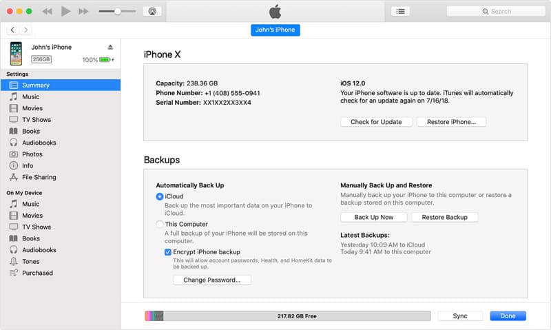 One of the good things about Apple ecosystem is the flexibility of data backup options Apple offers. If you're old school and implement backup of your iPhone 8 (Plus) with iTunes instead of iCloud (we will discussion it later) before your texts disappeared, you're able to restore your iPhone 8 and get back text messages from the iTunes backup. To do this: